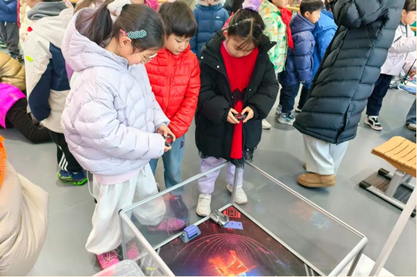 開幕式后,同學(xué)們投入到科技項(xiàng)目體驗(yàn)中。音樂教室內(nèi),AR穿衣魔鏡讓同學(xué)們通過手勢凌空換裝,體驗(yàn)虛擬與現(xiàn)實(shí)的交織;科學(xué)教室中,AI對(duì)弈機(jī)器人精準(zhǔn)落子,引發(fā)陣陣驚嘆;舞蹈教室內(nèi),腦波意念賽車通過專注度控制車速,展現(xiàn)意念的力量;多功能廳里,蜘蛛機(jī)器人靈活行走,穿越火線挑戰(zhàn)手眼協(xié)調(diào)……每個(gè)角落都充滿了好奇與探索的熱情。