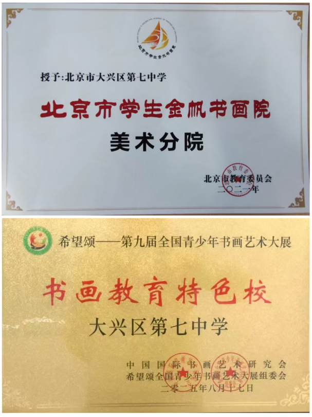 北京市大興區(qū)第七中學始建于1993年,是一所九年一貫制公辦學校。歷經(jīng)30年高質(zhì)量發(fā)展,現(xiàn)已形成一校兩址,小初一體的辦學格局。大興七中堅持“人生中心教育”辦學理念。以“優(yōu)秀做人、成功做事、幸福生活、勇于擔當”為育人目標,形成了自己的美育辦學特色。學校于2009年被評為首批北京市藝術(shù)特色校,至今連續(xù)三屆被北京市教委授予“北京市學生金帆書畫院”光榮稱號。