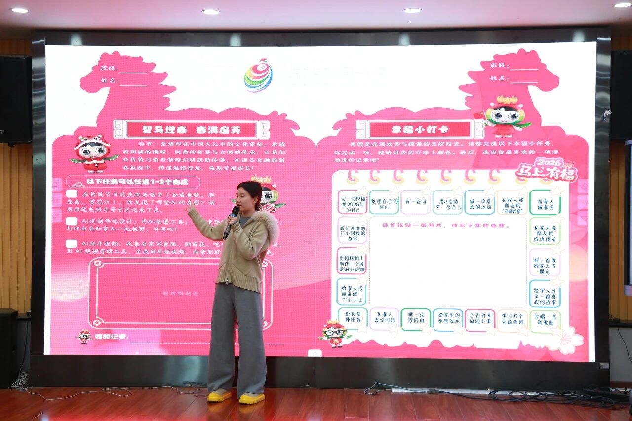 隨后,一段溫情的視頻帶領(lǐng)全體師生共同回顧了本學(xué)期的“幸福瞬間”。從課堂上的專注凝思到操場上的奔跑歡笑,從社團(tuán)活動(dòng)的創(chuàng)意迸發(fā)到節(jié)日慶典的精彩綻放,一幀幀畫面記錄了孩子們幸福成長的足跡,也凝結(jié)著老師們辛勤耕耘的深情。