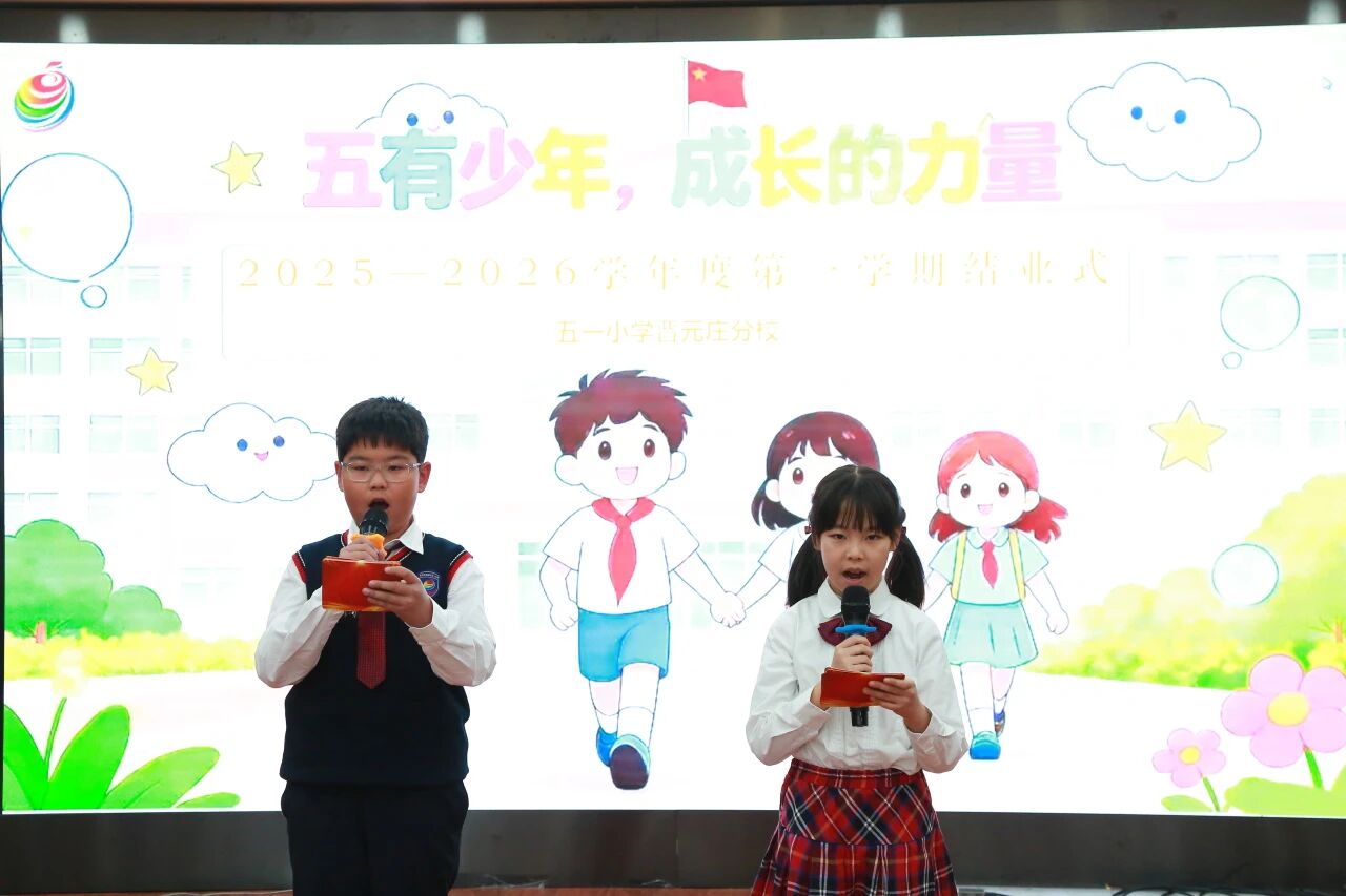 2026年1月23日,五一小學(xué)晉元莊分校2025-2026學(xué)年度第一學(xué)期“五有少年-成長的力量”主題結(jié)業(yè)式在校園內(nèi)溫情啟幕。全校師生共同回望這一程的耕耘,細(xì)數(shù)這一路的成長足跡,在儀式中觸摸教育的溫度,感悟成長的力量。