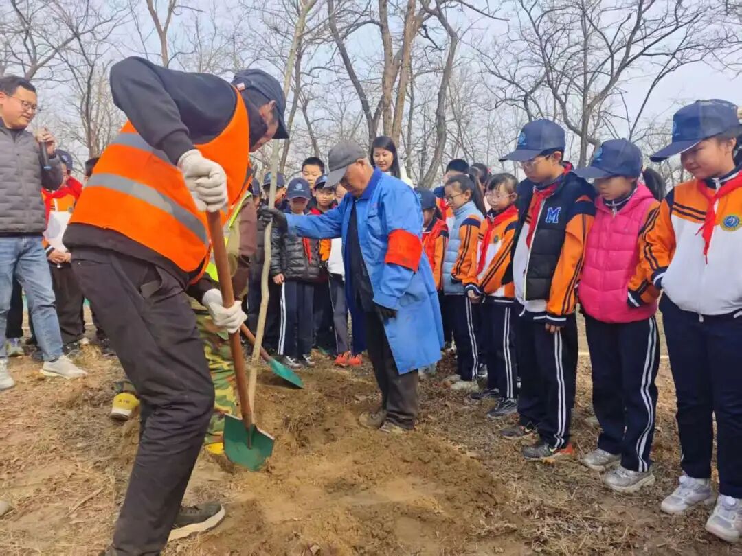 科普講解結(jié)束后,植樹實(shí)踐環(huán)節(jié)正式拉開帷幕。師生們熱情高漲、分工協(xié)作,紛紛拿起鐵鍬、水桶等工具,投入到植樹活動中。大家揮鍬挖坑、扶正樹苗、培土壓實(shí)、提水澆灌,每一個步驟都認(rèn)真細(xì)致、有條不紊,原本空曠的土地上,很快便挺立起一株株充滿生機(jī)的樹苗。師生們看著自己親手栽種的樹苗,臉上洋溢著喜悅與自豪,紛紛表示會牢記護(hù)綠責(zé)任,持續(xù)關(guān)注樹苗生長,用實(shí)際行動守護(hù)綠色家園。