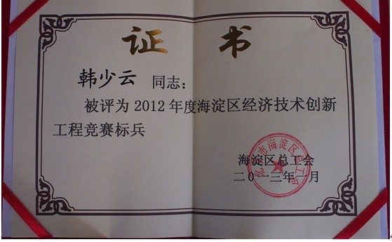 【達(dá)內(nèi)CEO韓少云先生榮獲“2012年度海淀區(qū)經(jīng)濟(jì)技術(shù)創(chuàng)新工程競(jìng)賽標(biāo)兵證書”】