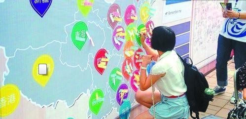 昨天,北京多所高校2013級本科生開始報到。記者一早來到位于西土城路的北京郵電大學(xué),多位家長帶著大包小包和新生一起報到。在信息與通信工程學(xué)院的迎接新生處,學(xué)校特意設(shè)置了一張碩大的中國地圖,前來報到的新生會從學(xué)長那里得到一張紙條,寫上名字后將紙條貼到自己家鄉(xiāng)的位置。一上午時間,中國地圖已經(jīng)變成色彩繽紛的“新生地圖”。