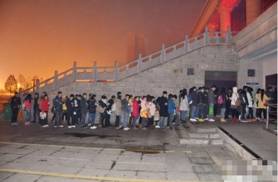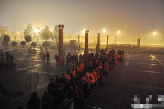 冒著嚴(yán)寒排隊(duì)的考生們