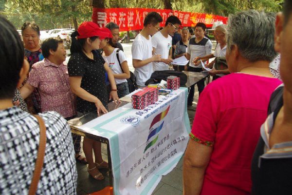活動中間,汽院青春踐行團隊舉行了橫幅簽字活動、問卷調(diào)查和有獎問答活動,并與現(xiàn)場觀眾互動,將活動氣氛推向高潮。在有獎問答環(huán)節(jié),汽院青春踐行團隊隊員們向市民提問了一些如“南水北調(diào)是何年何月完工通水”的基本常識,答對后的市民可以領(lǐng)取一個由愛十堰社區(qū)贊助的環(huán)保袋,并到橫幅上簽字,掃描青春踐行團隊的公眾微信,最后可以再獲得一份禮品。汽院青春踐行團隊介紹,他們此次活動的目的是為市民普及南水北調(diào)常識,幫助市民全面了解南水北調(diào)并且學(xué)習(xí)南水北調(diào)水源區(qū)的先進人物事跡,以此來歌頌?zāi)切┰谀纤闭{(diào)過程中辛勤付出的工作人員和移民。