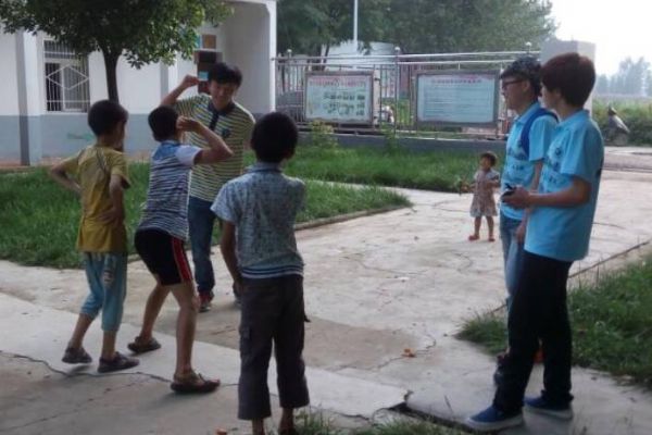 下午,走下講臺的“大師”儼然成了孩子王。帶著孩子們在那塊兒不大的草地上做各種各樣的游戲。而大師也是經(jīng)常被孩子們“欺負”的老師,是孩子們眼中好脾氣幽默風(fēng)趣的傻哥哥,家長們眼中有知識、有耐心善良的大學(xué)生。