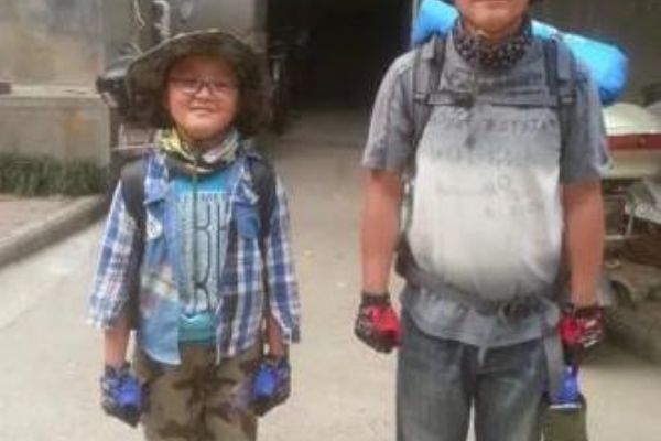圖為拜云鵬父子全副武裝,踏上從洛陽至西安的徒步旅行。 受訪者供圖 攝