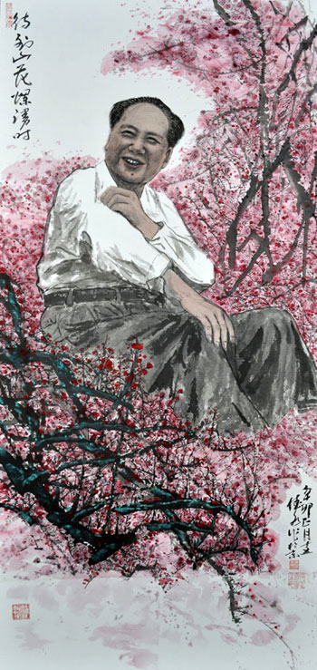 今年年初,新春伊始,王德水先生獨自在畫室創(chuàng)作完成了力作,人物畫:毛澤東主席詩意《待到山花爛漫時》。毛主席在梅花盛開的時刻“在叢中笑”。讓人可親可敬。