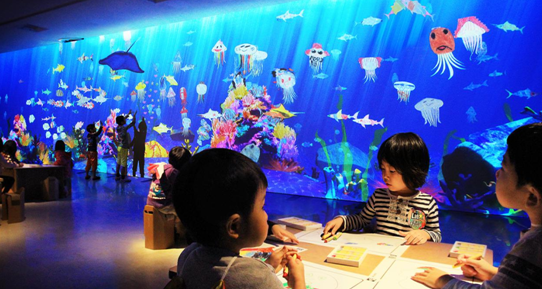 互動藝術(shù)是藝術(shù)作品本身或者對藝術(shù)作品的欣賞過程中包含著觀賞者的參與在內(nèi)的一種藝術(shù)形態(tài),就其外在表現(xiàn)來看,互動藝術(shù)總是基于一定設(shè)備基礎(chǔ)(互動裝置、計算機(jī)、互聯(lián)網(wǎng)等)之上。這種新穎的藝術(shù)類型,更強(qiáng)調(diào)藝術(shù)與科技的結(jié)合,在博物館、親子教育中也運(yùn)用廣泛,能夠充分滿足寓教于樂的需求。