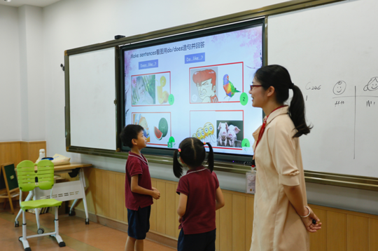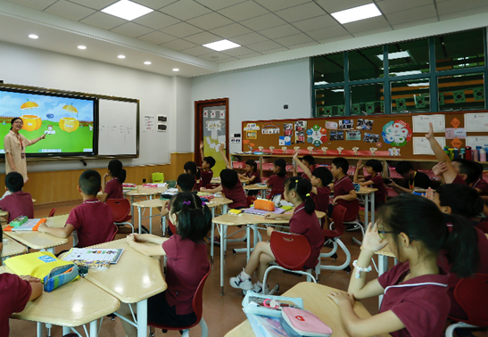 在華師附外,每一次何老師邀請(qǐng)學(xué)生上臺(tái)答題,學(xué)生們洪亮的應(yīng)答聲便不絕于耳。通過(guò)希沃白板 5里有趣的互動(dòng)游戲幫助學(xué)生理解生澀、難懂的語(yǔ)法句式,雖是難度稍高的全英教學(xué)課堂,但孩子們一個(gè)個(gè)都聽(tīng)得津津有味、聚精會(huì)神。