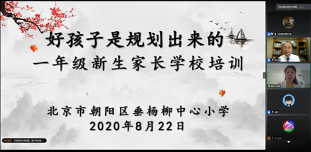 2020年8月22日,垂楊柳中心小學(xué)(集團(tuán))組織本部松榆校區(qū)、楊柳校區(qū)及各所分校近1700名一年級(jí)新生家長(zhǎng)通過(guò)線上方式召開(kāi)了“好孩子是規(guī)劃出來(lái)的”——2020年一年級(jí)新生家長(zhǎng)第二次培訓(xùn)。垂楊柳中心小學(xué)鐘亞利校長(zhǎng)、鄭丹娜書(shū)記及各校的領(lǐng)導(dǎo)、教育教學(xué)干部,一年級(jí)任課教師一同參會(huì)。培訓(xùn)活動(dòng)由德育主任李穎主持。