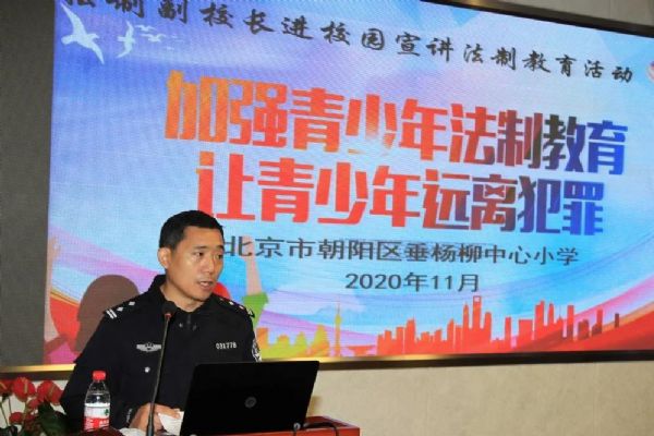 為積極做好法治教育,提高學(xué)生法治意識,營造安全和諧的校園環(huán)境,2020年11月16日垂楊柳中心小學(xué)邀請法制副校長,潘家園派出所祝首川警官走進(jìn)學(xué)校,為全校師生進(jìn)行法制宣講。
