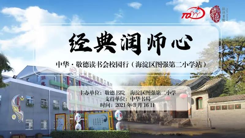 2021年3月16日, 由敬德書院與海淀區(qū)圖強(qiáng)第二小學(xué)聯(lián)合主辦、中華書局支持的“經(jīng)典潤(rùn)師心——中華·敬德讀書會(huì)校園行”首場(chǎng)讀書分享會(huì)在學(xué)校隆重啟幕。