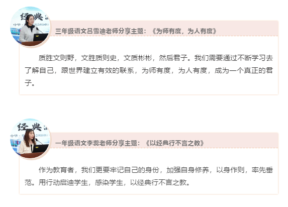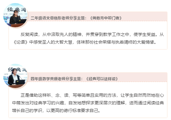 此次讀書分享活動(dòng)將進(jìn)一步激勵(lì)圖強(qiáng)二小的全體教師樹立“立學(xué)以讀書為本”的觀念,在讀經(jīng)典、品經(jīng)典、傳經(jīng)典中不斷滋養(yǎng)中華文化自信,行讀書之路,品讀書之樂,悟讀書之感,將“經(jīng)典潤(rùn)師心”之路行之更遠(yuǎn)。