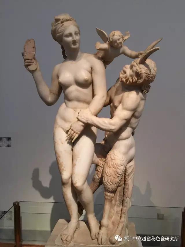 希臘國家考古博物館女神是阿芙羅狄蒂(維納斯)一只腳穿木屐,另一只手拿木屐,似打男神是其丑夫。小孩是丘比特。公元前雕刻作品。