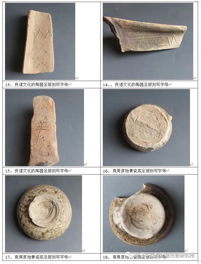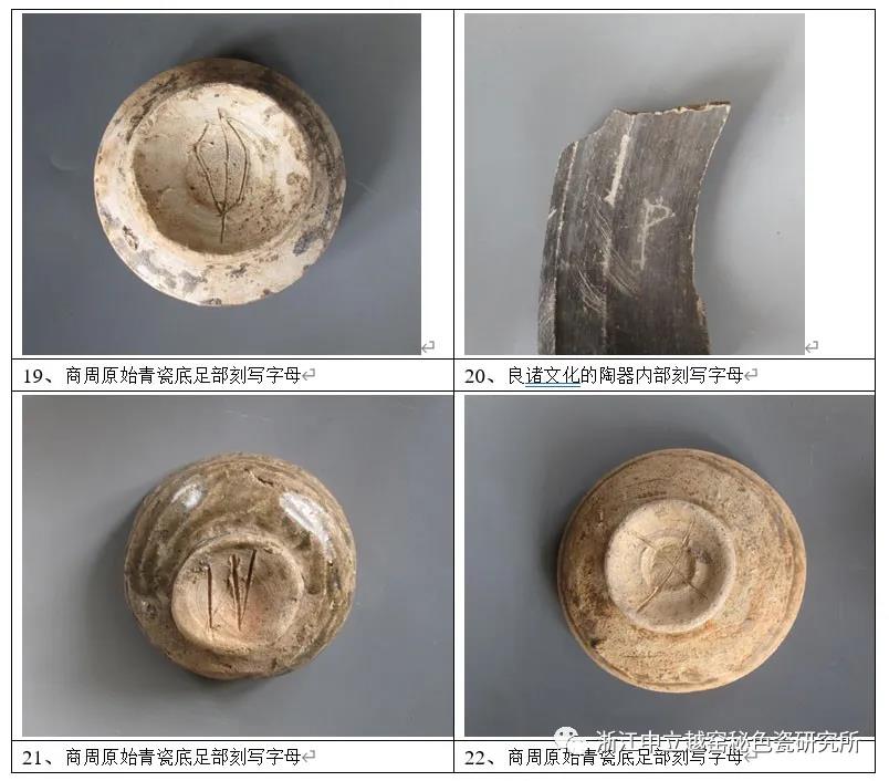 筆者收集先秦陶瓷類古希臘字母造字結(jié)構(gòu)標本研究新發(fā)現(xiàn):八千年前跨湖橋文化至良諸文化時期已有古越先民把字母刻劃在陶瓷器上;夏商周也出現(xiàn)原始青瓷底足、蓋部刻劃相類同“字母”款。華夏先民數(shù)千年之間都在應(yīng)用這些字母文字體系造字結(jié)構(gòu),至秦代禁用。 1.先秦陶瓷類古希臘字母認定方法,以造字結(jié)構(gòu)為準則 為什么要說,造字結(jié)構(gòu):文字確認方法,是否符造字結(jié)構(gòu)標準要求檢驗,造字結(jié)構(gòu)標準獲國際共識準則。 先秦華夏陶瓷類古希臘字母造字結(jié)構(gòu)23個,經(jīng)多位希臘學者鑒定符合希臘字母造字結(jié)構(gòu)標準。而且還有希臘學者認為此類古希臘字母造字結(jié)構(gòu)23個,應(yīng)該是古希臘人寫的,這說明此字母造字結(jié)構(gòu)標準完全相同,毋庸置疑。 先秦原始青瓷字母款與希臘線形字母對照譯中文讀音,如:示圖2。