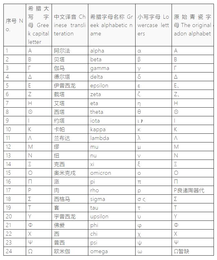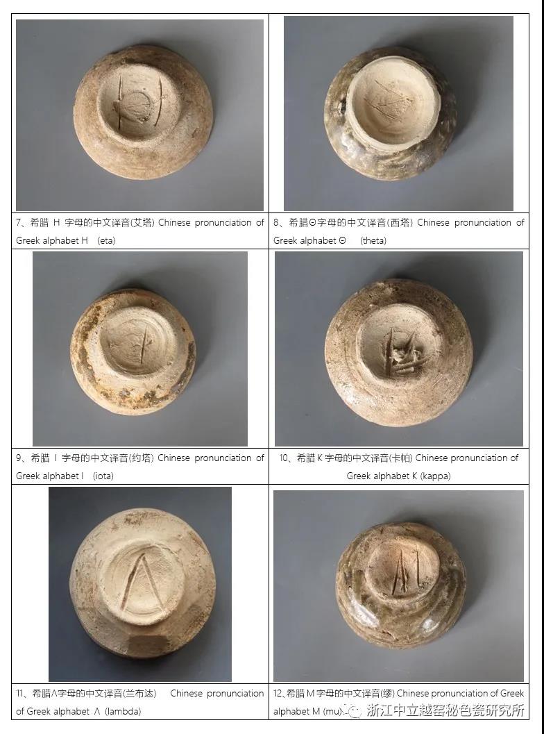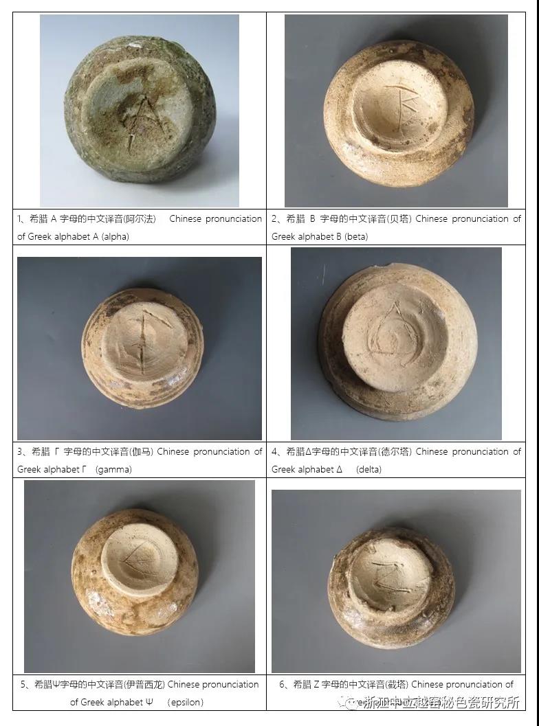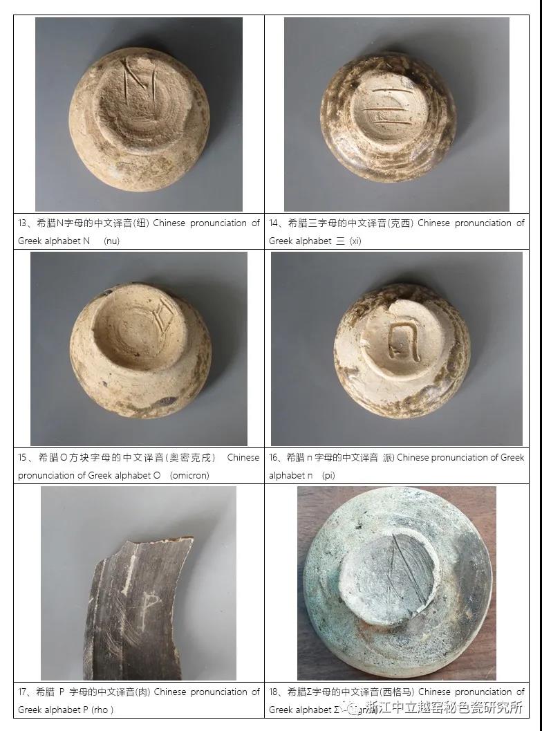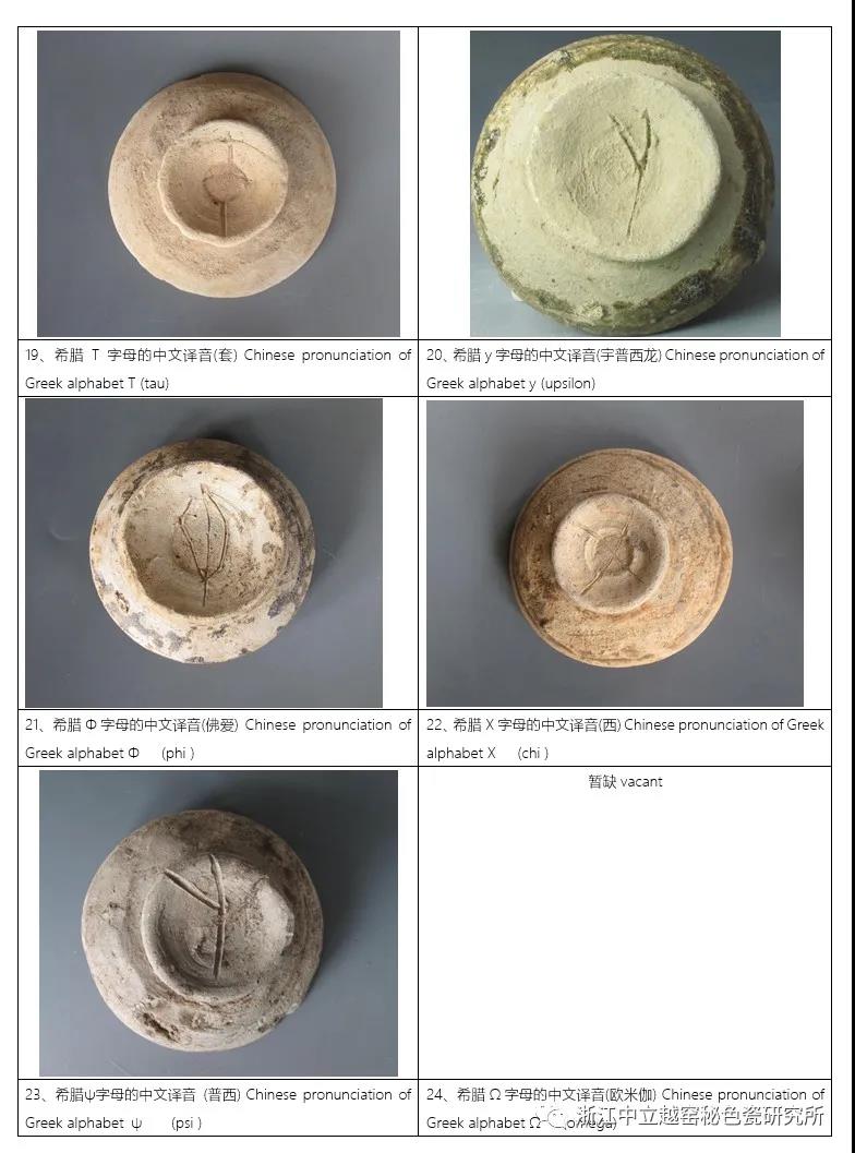先秦原始青瓷字母款與希臘字母譯文對照表文。如下:示圖3