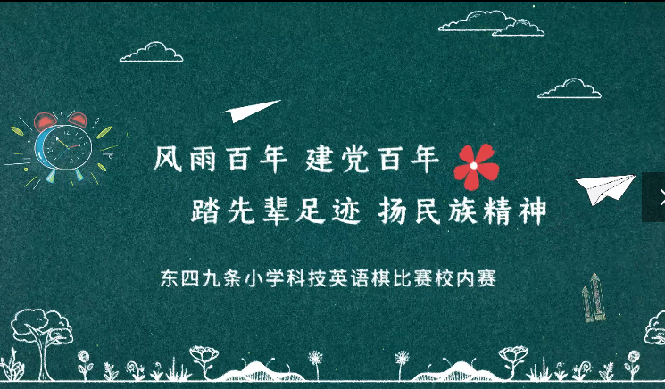 為慶祝建黨100周年,豐富學(xué)生生活,展現(xiàn)孩子們的精神風(fēng)貌,東四九條小學(xué)于4月27、28兩日舉行了“風(fēng)雨百年 建黨百年 踏先輩足跡 揚(yáng)民族精神”科技英語棋比賽校內(nèi)賽。