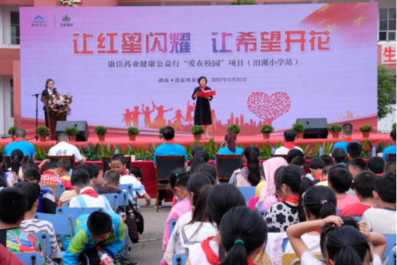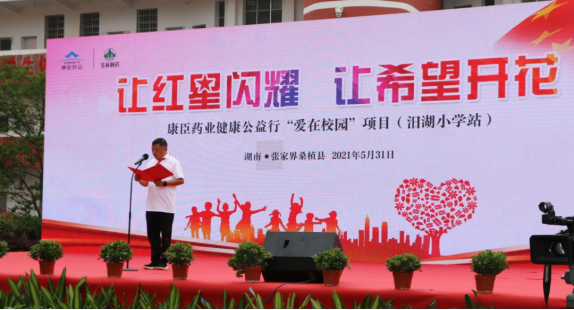 2021年5月31日,康臣藥業(yè)集團健康公益行“愛在校園”項目暨全國首個“紅星醫(yī)務室”揭牌儀式,在湖南省張家界市桑植縣汨湖小學隆重舉行。桑植縣政協(xié)副主席闕玉英同志、走馬坪白族鄉(xiāng)黨委書記向臻同志、桑植縣教育局副局長向左輝同志等領導出席儀式,康臣藥業(yè)集團董事局主席安郁寶先生,董事局副主席、總裁黎倩女士,營銷中心副總經(jīng)理吳江先生,營銷中心學術二部總監(jiān)、汨湖小學項目負責人彭俊先生,康臣益行社社長龍英會女士及康臣益行社湖南分社社員們,與汨湖小學全校師生共計四百余人共同出席了此次活動。