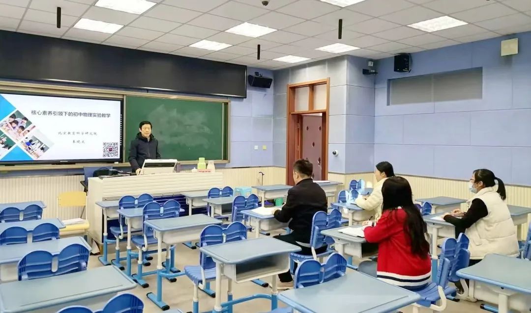 隨著教育改革的深入,核心素養(yǎng)的培養(yǎng)已成為物理教學(xué)的重要目標(biāo)。為了進(jìn)一步提升物理教師的實(shí)驗(yàn)教學(xué)設(shè)計(jì)能力,確保實(shí)驗(yàn)教學(xué)能夠有效促進(jìn)學(xué)生核心素養(yǎng)的發(fā)展,2024年12月13日上午,我校邀請(qǐng)了北京教科院基礎(chǔ)教育教學(xué)研究中心物理室主任秦曉文老師為物理組的老師們開展了一場(chǎng)以“核心素養(yǎng)引領(lǐng)下的中學(xué)物理實(shí)驗(yàn)教學(xué)設(shè)計(jì)”為主題的培訓(xùn)活動(dòng)。活動(dòng)由理化生教研組長(zhǎng)高福營老師主持,全體物理老師參加了此次培訓(xùn)。
