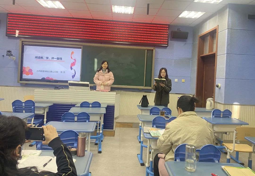 12月11日上午,我校中學(xué)部英語組非常榮幸邀請到北京市英語學(xué)科帶頭人、正高級教師陳芳老師入校指導(dǎo),開展主題為基于“教-學(xué)-評”一體化的初中英語閱讀教學(xué)設(shè)計與實施的專題培訓(xùn)。會議由中學(xué)部英語學(xué)科教研組長申珊雪老師主持,全體英語教師參與本次活動。