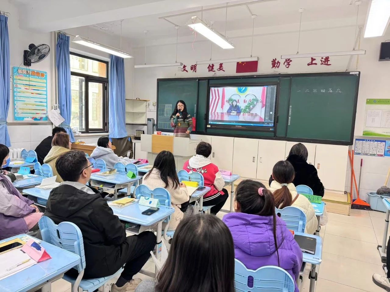 會議開始,康騰副校長向家長們介紹了學(xué)校近年來在教育教學(xué)方面取得的顯著成績,以及學(xué)校在推動素質(zhì)教育、促進(jìn)學(xué)生全面發(fā)展方面所做的努力和探索。在教學(xué)方面,學(xué)校采取多種方法“提質(zhì)增效”,取得了優(yōu)異成績。德育工作注重習(xí)慣養(yǎng)成,嚴(yán)格管理學(xué)生言行。碳中和建設(shè)方面,學(xué)校多路徑踐行,設(shè)立了碳幣評價機(jī)制。特色教育成果豐碩,社團(tuán)多樣,為學(xué)生提供豐富的學(xué)習(xí)平臺。體育工作積極組織賽事和鍛煉,增強(qiáng)學(xué)生體質(zhì)。她呼吁家校攜手,共同為孩子的成長貢獻(xiàn)力量。
