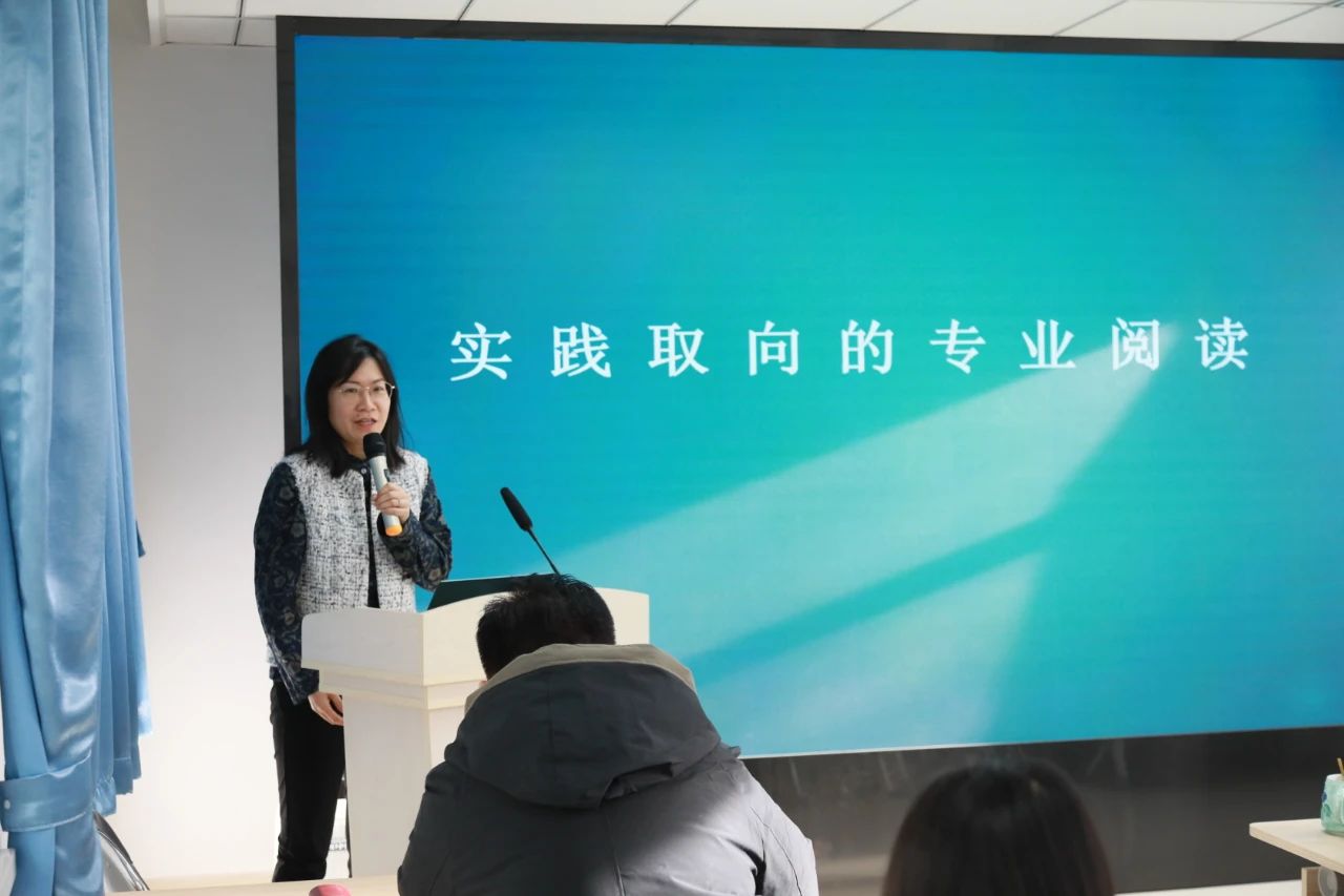 陳沛老師分享了“實(shí)踐取向的專業(yè)閱讀”,分別從為何讀、讀什么、怎么讀三個(gè)維度詮釋了教師要基于教學(xué)實(shí)踐進(jìn)行專業(yè)閱讀的觀點(diǎn)。具體提出,要基于教學(xué)實(shí)踐中的問(wèn)題選擇性閱讀;閱讀包含哲學(xué)類、教學(xué)思想類以及教學(xué)技法類的書(shū)籍獲得教學(xué)實(shí)踐問(wèn)題解決的啟示;將系統(tǒng)專業(yè)的閱讀轉(zhuǎn)化為教學(xué)實(shí)踐改進(jìn)的經(jīng)驗(yàn),并加強(qiáng)提煉實(shí)踐性反思的成果。陳老師最后送上寄語(yǔ):“生命本身沒(méi)有意義,思考賦予生命的意義!”號(hào)召教師們通過(guò)專業(yè)閱讀促進(jìn)專業(yè)成長(zhǎng)。