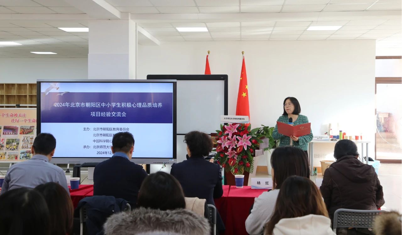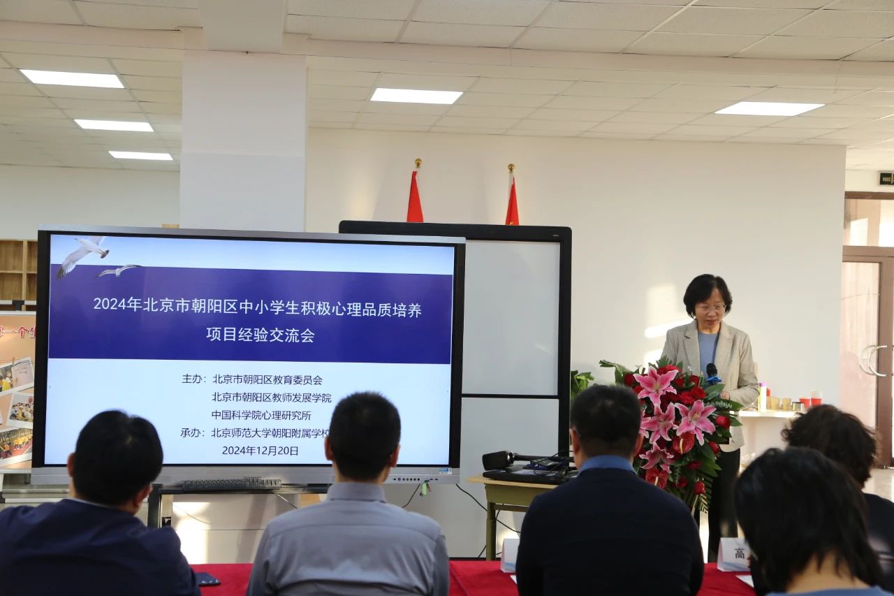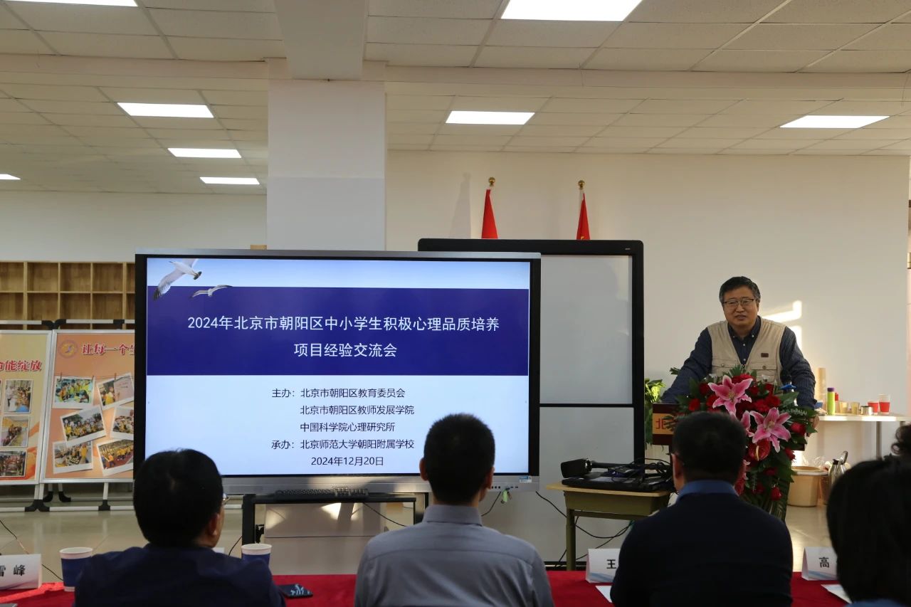 2024年12月20日,北京市朝陽區(qū)中小學(xué)學(xué)生積極心理品質(zhì)培養(yǎng)項(xiàng)目經(jīng)驗(yàn)交流會(huì)在北京師范大學(xué)朝陽附屬學(xué)校舉行。會(huì)議由北京市朝陽區(qū)教育委員會(huì)、北京市朝陽區(qū)教師發(fā)展學(xué)院聯(lián)合中國(guó)科學(xué)院心理研究所共同主辦。中國(guó)科學(xué)院心理研究所副所長(zhǎng)陳雪峰、繼續(xù)教育學(xué)院院長(zhǎng)李旭培,朝陽區(qū)教工委副書記陳先豹、德育科科長(zhǎng)王錚,朝陽區(qū)教師發(fā)展學(xué)院書記閆新全等領(lǐng)導(dǎo)出席會(huì)議,全區(qū)心理主管領(lǐng)導(dǎo)和心理教師190余人參會(huì)。教師發(fā)展學(xué)院德育心理培訓(xùn)中心主任楊紅主持會(huì)議。