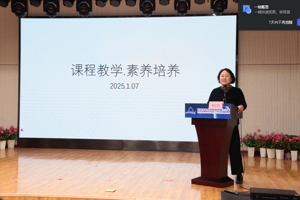 原豐臺(tái)分院副院長(zhǎng)、特級(jí)教師、正高級(jí)教師馬紅民作為點(diǎn)評(píng)專家進(jìn)行了指導(dǎo)。馬院長(zhǎng)高度贊揚(yáng)了學(xué)生的精彩展示,圍繞“課程教學(xué) 素養(yǎng)培養(yǎng)”這一主題,分享了核心素養(yǎng)導(dǎo)向的教學(xué)、單元整體教學(xué)、跨學(xué)科教學(xué)等方面的內(nèi)容。此外,馬院長(zhǎng)充分肯定了老師們的教學(xué)展示并進(jìn)行了點(diǎn)評(píng)與指導(dǎo)。劉彤老師創(chuàng)設(shè)真實(shí)的學(xué)習(xí)情境,注重引導(dǎo)學(xué)生在實(shí)際應(yīng)用場(chǎng)景中感受語(yǔ)文的工具性;史利豐老師確定了獨(dú)特的全息元,將課堂學(xué)習(xí)與生活實(shí)踐相結(jié)合,提升教學(xué)效果;張陳老師在真實(shí)情境下,實(shí)現(xiàn)了問(wèn)題解決和實(shí)踐探索,體現(xiàn)了育人價(jià)值挖掘的深度與廣度;“思·創(chuàng)數(shù)學(xué)”課程群充分展現(xiàn)了跨學(xué)科理念與單元微課程的設(shè)計(jì),實(shí)現(xiàn)多學(xué)科的深入融合和資源的充分利用。同時(shí),馬院長(zhǎng)也提出了改進(jìn)與提升的建議,為老師們的教學(xué)實(shí)踐提供了明確的方向。