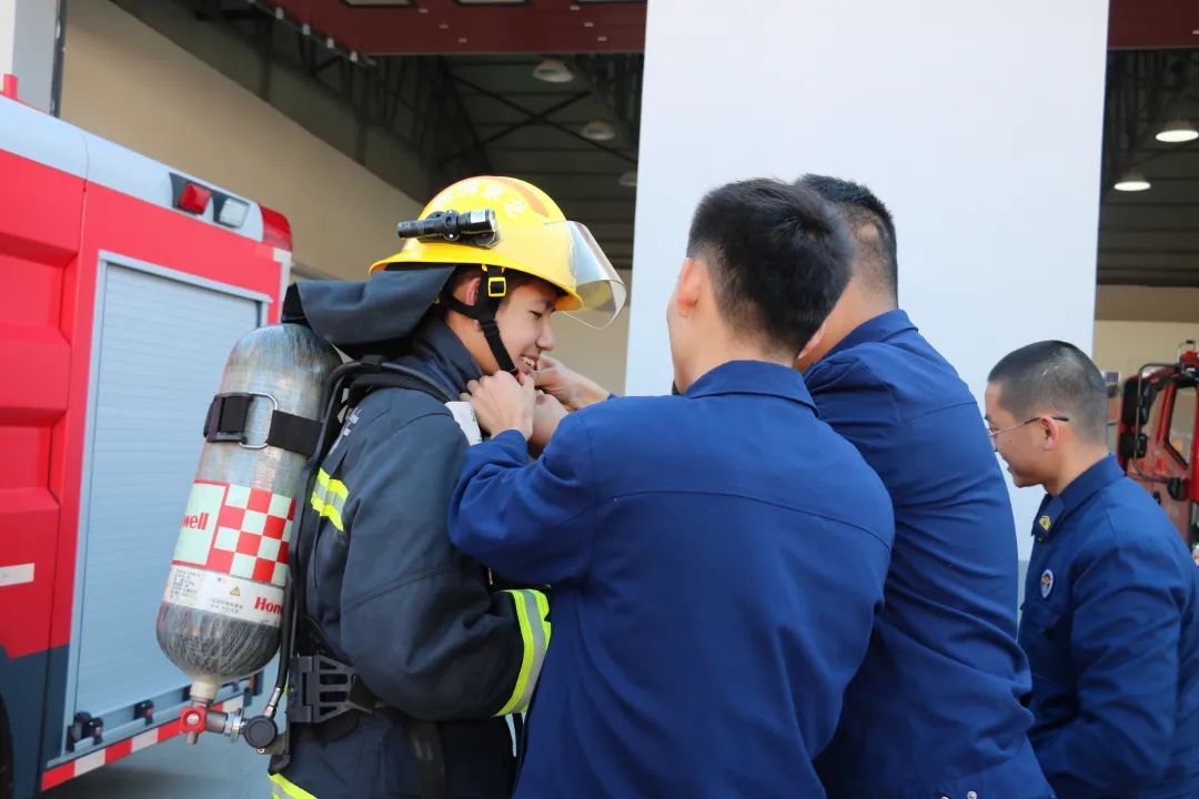 通過試穿消防服,學生真正體驗了一把“消防員”,親身體驗到消防員工作的艱險,加深了對消防員這一職業(yè)的理解與崇敬。