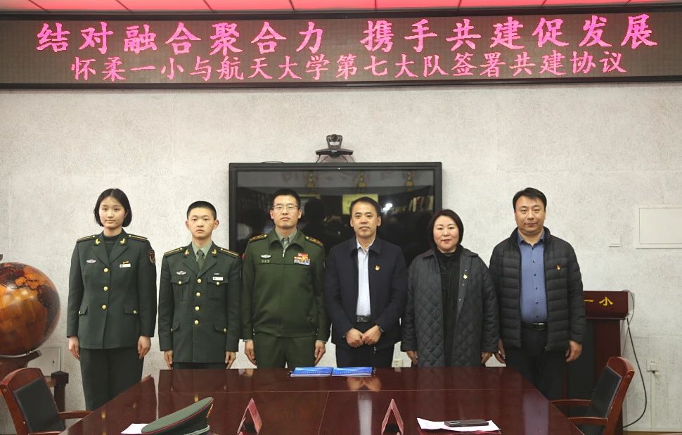 懷柔一小與航天工程大學(xué)航天信息學(xué)院學(xué)員七大隊簽約儀式順利舉行,為校社協(xié)同育人寫下生動注腳。馬永明副大隊長、謝欣然、婁文學(xué)員共同參與學(xué)校共建協(xié)議簽署儀式,懷柔一小書記羅士臣、德育副校長邢小麗、德育主任王歡參與此次活動。
