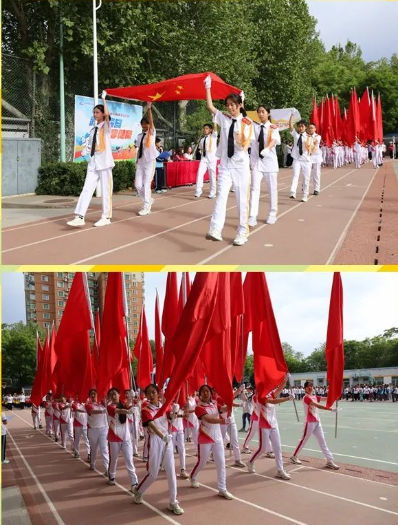 在莊嚴(yán)的國歌聲中,五星紅旗冉冉升起,全體師生莊嚴(yán)肅立,向國旗致以最崇高的敬意。王雅麗副校長致開幕詞,她鼓勵同學(xué)們在賽場上勇于拼搏,挑戰(zhàn)自我,賽出風(fēng)格和水平。希望同學(xué)們在運動中感受快樂,在拼搏中收獲成長。接著,運動員代表王昱嘉發(fā)言,表達了將全力以赴,以飽滿的熱情投入到運動會中。紀(jì)琛燕主任為運動會順利開展提出了具體要求,明確安全事項。