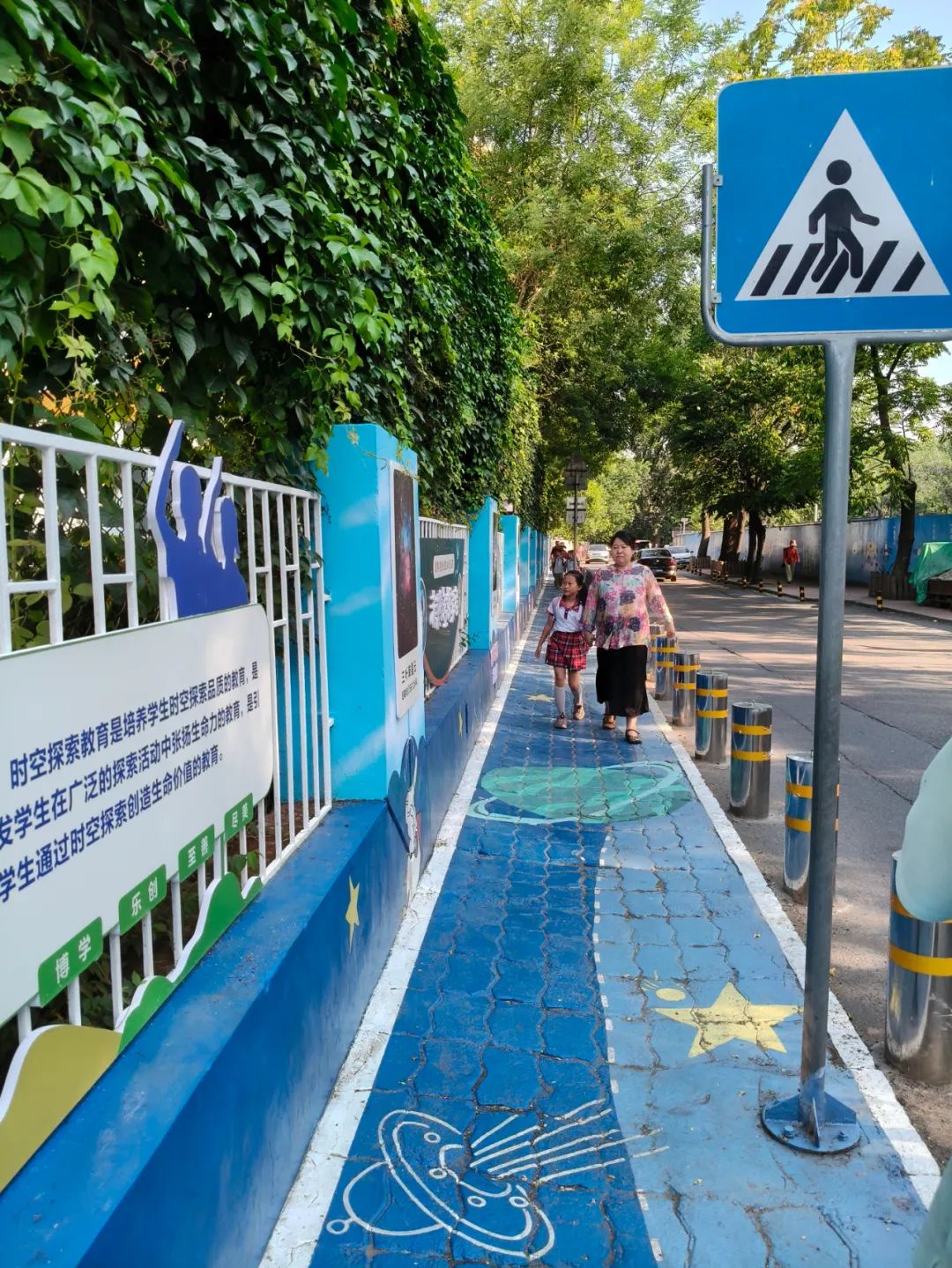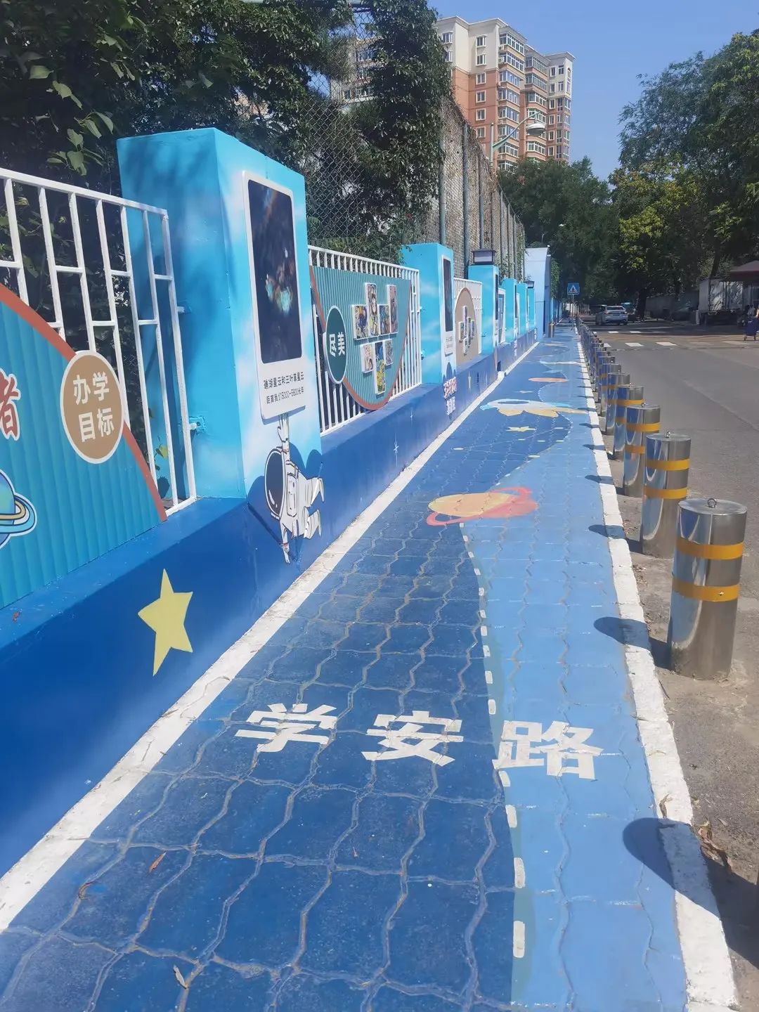 當(dāng)清晨的陽(yáng)光掠過(guò)色彩斑斕的學(xué)安路,孩子們踩著繪有行星軌跡的地面,帶著對(duì)宇宙的好奇與校園的熱愛(ài)闊步前行。這不僅是一條安全通道,更是校園文化建設(shè)的創(chuàng)新樣本,讓教育的溫度隨著每一步腳印延伸至更遠(yuǎn)的時(shí)空。