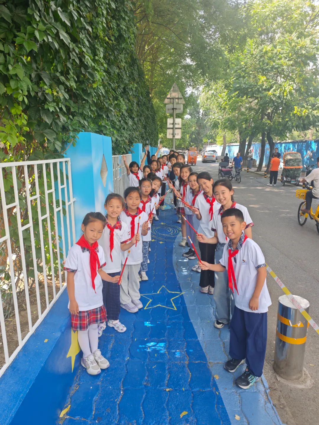 為落實(shí)北京市兒童友好城市建設(shè)要求,打造安全、溫馨的通學(xué)環(huán)境,豐臺(tái)區(qū)鼓勵(lì)全區(qū)各中小學(xué)校與交通部門、街道社區(qū)密切配合,積極探索以彩化、美化“學(xué)安路”為載體,發(fā)動(dòng)師生開(kāi)展創(chuàng)意彩繪實(shí)踐活動(dòng),繪制出展現(xiàn)校園文化特色、傳遞教育愛(ài)與溫情的“彩色學(xué)安路”。