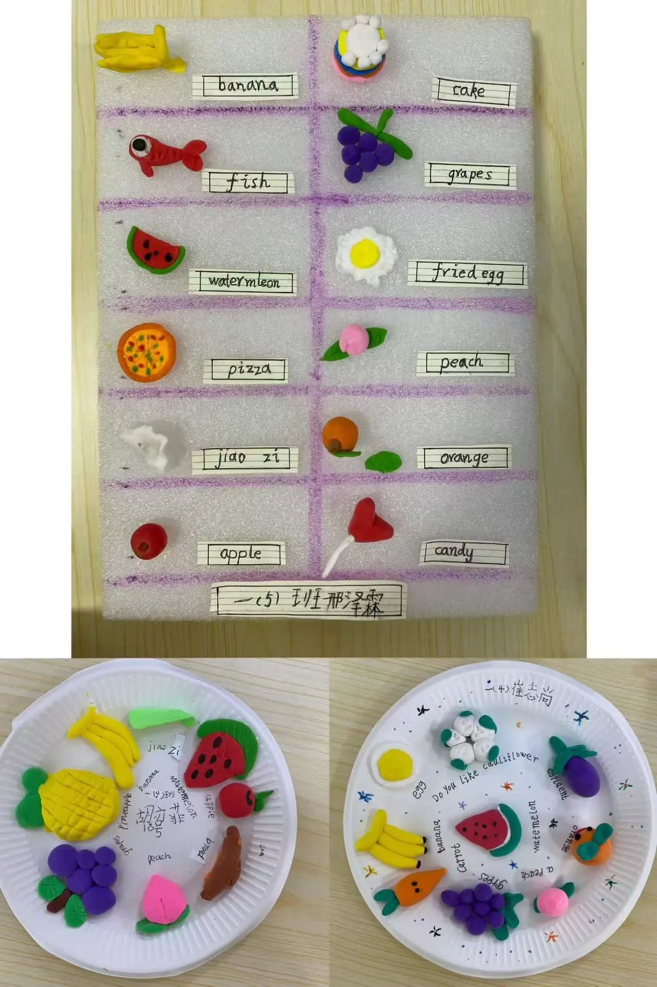 一年級開展 “盤子中的食物” 主題活動,同學(xué)們學(xué)習(xí)常見食物英文表達(dá),通過超輕粘土制作食物模型,激發(fā)學(xué)習(xí)興趣;顒雍螅S多同學(xué)能準(zhǔn)確記憶單詞,書寫工整,加深了對食物類單詞的理解。