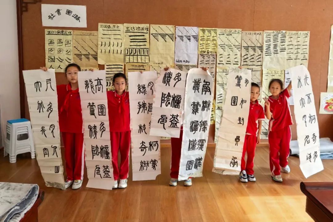 恰逢六年級畢業(yè)季,兩個社團(tuán)成員精誠合作,用對比印章將美好祝福融入其中,希望六年級的學(xué)子們?nèi)缂坠前銏皂g,似小篆般從容,鐫刻屬于自己的精彩人生篇章。