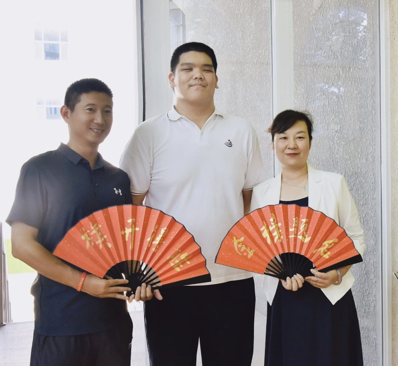 在體育館前,一場充滿溫情與期許的歡迎儀式溫暖上演。校領(lǐng)導、初三教師及家長代表們手持紅扇,扇面上“金榜題名”與“旗開得勝”的金色字樣在陽光下熠熠生輝。他們依次與每位初三學子擊掌,掌心相觸的瞬間,傳遞的是師長們“愿你落筆生花,圓夢今夏”的殷切祝福,更是對同學們 “執(zhí)筆為劍,不負少年志” 的堅定鼓勵。