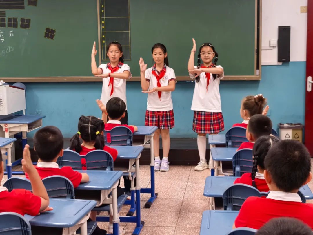 進(jìn)入一年級教室,小朋友們輕手輕腳找到空位坐下。少先隊(duì)員們展示書包整理、文具擺放技巧,還邀請弟弟妹妹體驗(yàn)“舉手發(fā)言”、“坐姿比拼”。少先隊(duì)員們現(xiàn)場演繹日常行為規(guī)范小品,讓教室里充滿歡聲笑語。