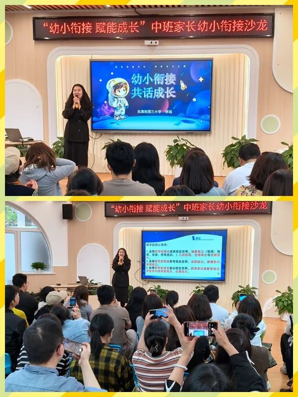 班主任林遠(yuǎn)老師走進(jìn)幼兒園中班,面向家長開展《幼小銜接 共話成長》的講座,強(qiáng)調(diào)家校攜手,科學(xué)做好幼小銜接的重要性。