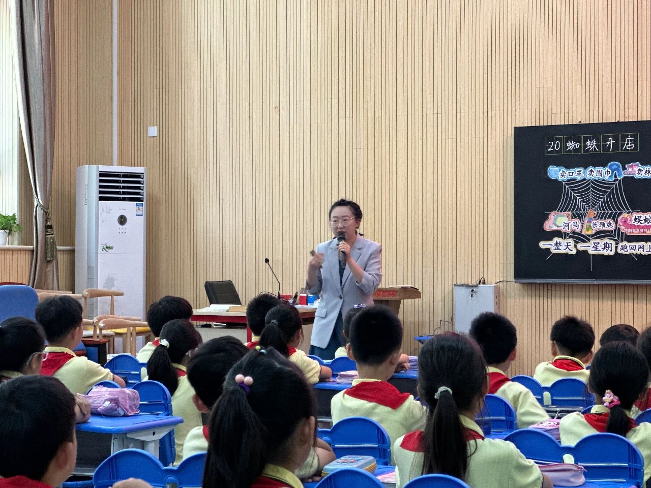 活動伊始,由北京第二實驗小學(xué)大興實驗學(xué)校馬明月和王子瑜兩位老師分別展示了二年級《蜘蛛開店》的第一課時和第二課時現(xiàn)場課。兩位老師的教學(xué)風(fēng)格各異,但對教材的深度挖掘與教學(xué)方法的精巧設(shè)計讓人眼前一亮,同時兩堂課都充分展現(xiàn)了“教—學(xué)—評”一體化理念在教學(xué)實踐中的應(yīng)用, 引導(dǎo)學(xué)生積極參與,積極探索,課堂氛圍活躍。