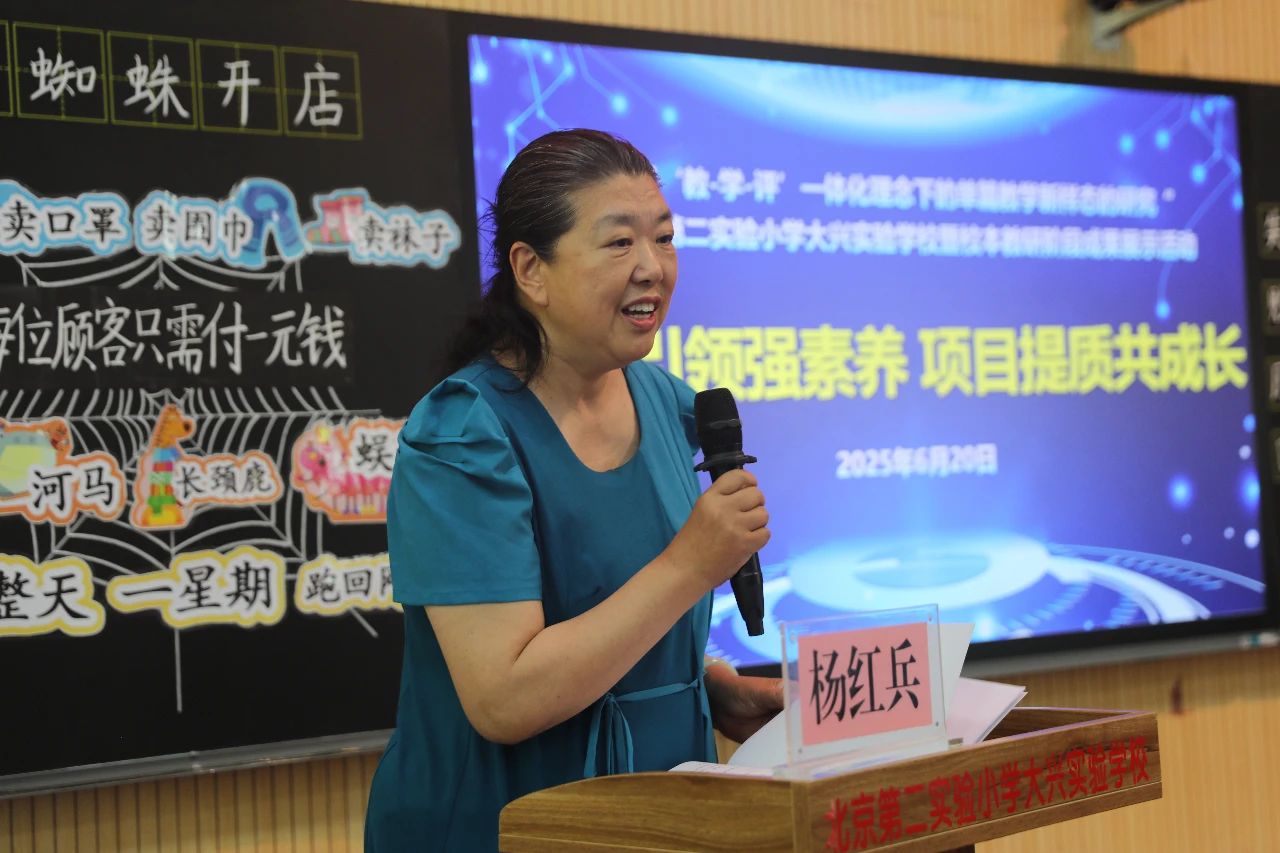 2025年6月20日,基于“教—學(xué)—評”一體化理念下的單篇教學(xué)新樣態(tài)研究項目組走進北京第二實驗小學(xué)大興實驗學(xué)校暨校本教研階段成果展示活動成功舉辦。此次活動旨在進一步踐行“三新”教學(xué)理念,推動學(xué)校語文學(xué)科校本教研工作的創(chuàng)新發(fā)展,并提升教師的專業(yè)素養(yǎng)和教學(xué)水平。本次活動采用線上線下相結(jié)合的形式進行。參與活動的專家、領(lǐng)導(dǎo)有北京市特級教師、正高級教師楊紅兵,東城區(qū)語文教研員王建紅,基于“教—學(xué)—評”一體化理念下的單篇教學(xué)新樣態(tài)研究項目組專家張艷清,北京第二實驗小學(xué)大興實驗學(xué)校黨支部書記、校長房炳云、副校長薛艷、副校長姚林濤、教導(dǎo)處主任臧雪彤,以及參與項目研究的“種子教師”“卓越教師”,北京第二實驗小學(xué)大興實驗學(xué)校的全體語文教師。本次活動由北京第二實驗小學(xué)大興實驗學(xué)校副校長姚林濤主持。