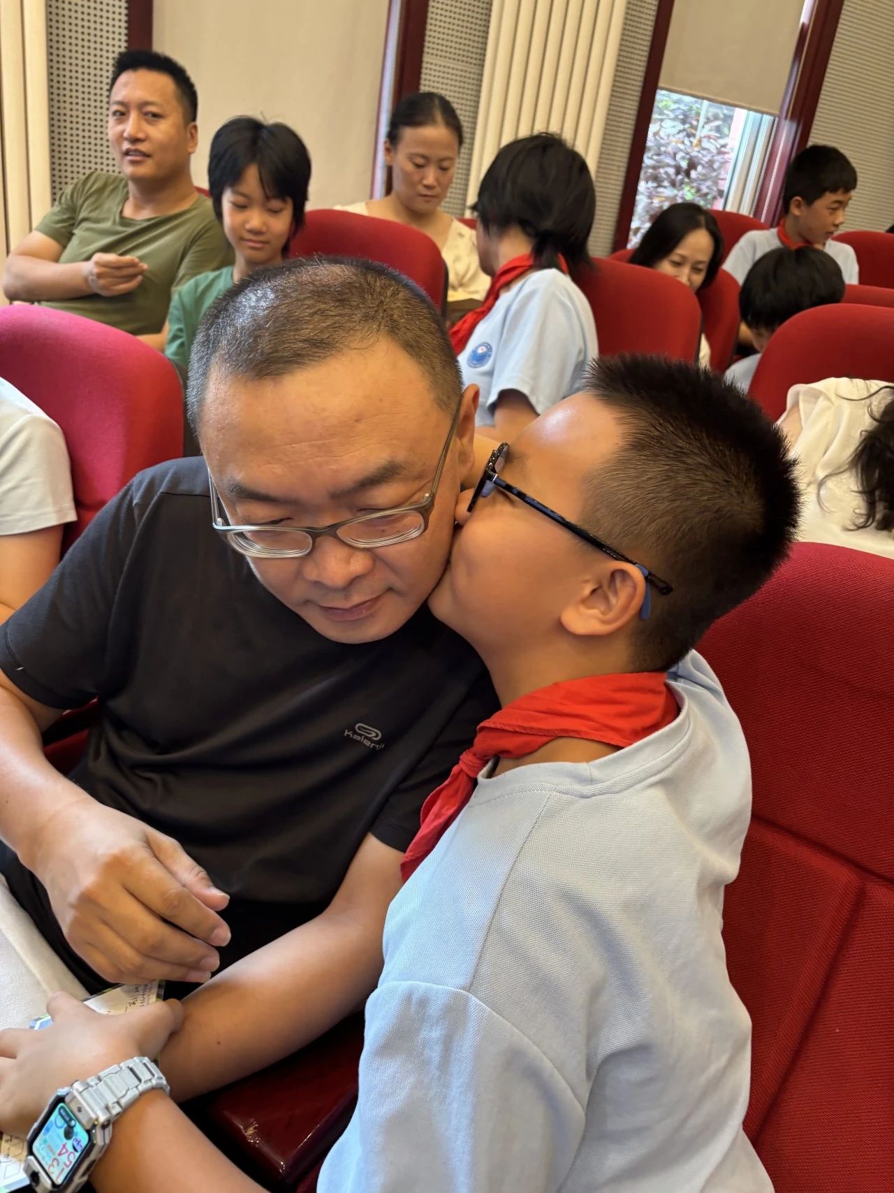 詩(shī)朗誦《風(fēng)中的時(shí)光信箋》如同一把鑰匙,打開(kāi)了時(shí)光的抽屜。當(dāng)“依稀記得那年銀杏樹(shù)葉嫩黃,而鳳凰花開(kāi)滿(mǎn)枝椏,離別的鐘聲已輕輕敲響”的詩(shī)句流淌而出時(shí),后排家長(zhǎng)席的鏡頭紛紛對(duì)準(zhǔn)了那些熟悉的畫(huà)面:一年級(jí)入學(xué)的稚嫩身形、大課間游戲的精彩瞬間、運(yùn)動(dòng)場(chǎng)上奔跑的掠影。原來(lái)時(shí)光早把懵懂釀成了蜜,藏在每一頁(yè)課本的褶皺里。
