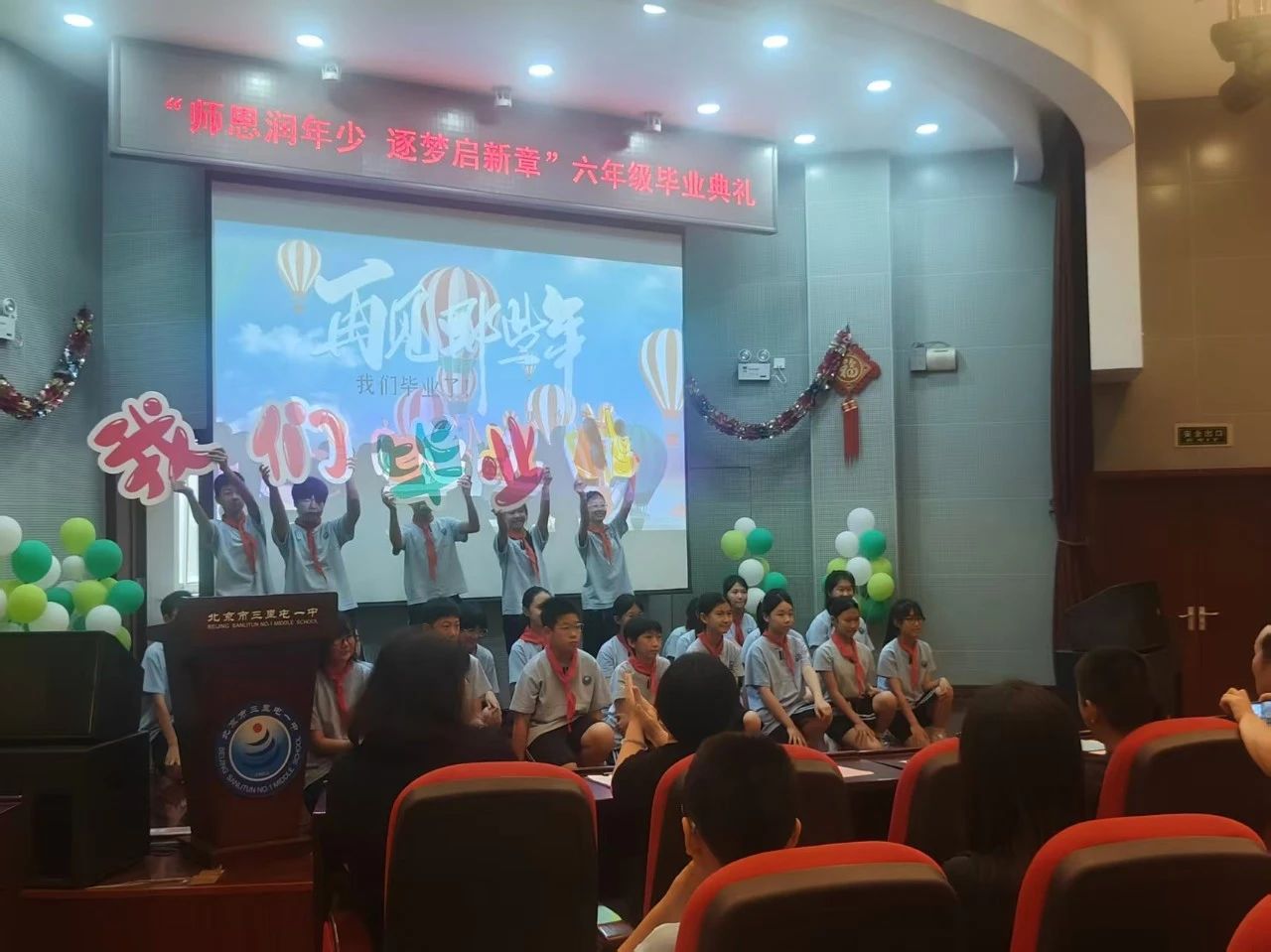 孟夏的雨絲串成晶瑩的珠簾,打濕了百子園校區(qū)的綠樹(shù)枝椏。6月19日,北京市三里屯一中百子園校區(qū)2025屆六年級(jí)畢業(yè)典禮在雨后初晴中啟幕。這場(chǎng)以“師恩潤(rùn)年少 逐夢(mèng)啟新章”為主題的盛會(huì),如同一本裝幀精美的成長(zhǎng)紀(jì)念冊(cè),將兩千余個(gè)成長(zhǎng)光影悉心收進(jìn)扉頁(yè),在師生家長(zhǎng)的淚光與笑靨中,鋪展成一首關(guān)于告別與啟程的詩(shī)。