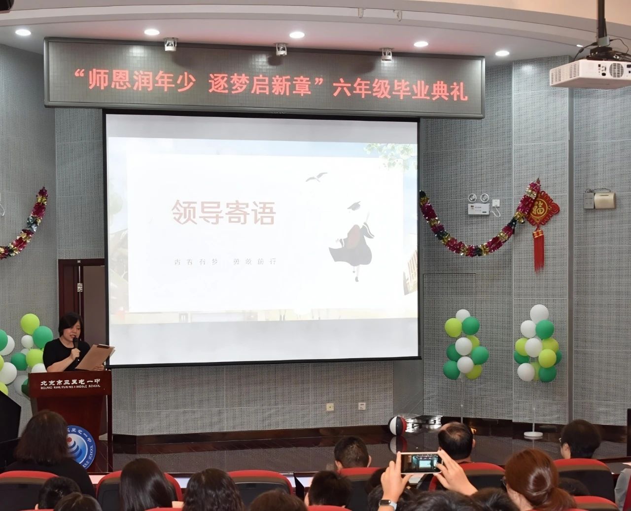 教學(xué)處王艷主任代表三里屯一中領(lǐng)導(dǎo)班子送上畢業(yè)寄語(yǔ),為即將踏上新征程的學(xué)子們注入勇氣,激勵(lì)他們?cè)谖磥?lái)的路上無(wú)謂風(fēng)雨、砥礪前行。
