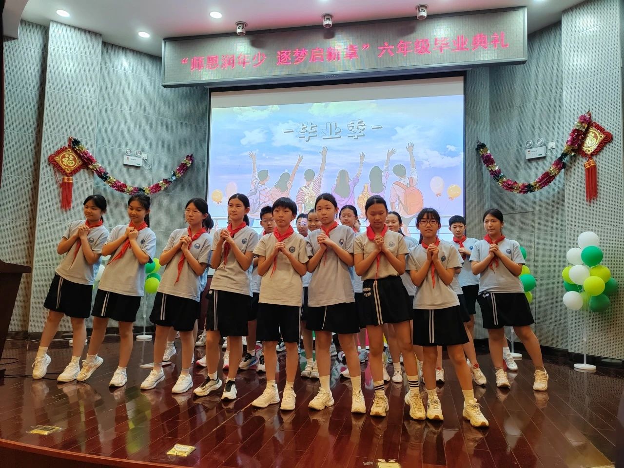 雨絲已歇,彩虹初現(xiàn)。孩子們哼著《起風(fēng)了》走出禮堂,每一步都在地面拓印出少年的韻腳。這場(chǎng)畢業(yè)典禮不僅是童年的句點(diǎn),更是少年逐夢(mèng)的冒號(hào)。旋律在校園上空回蕩,百子園的綠樹(shù)已在他們身后站成背影,而那些被師恩浸潤(rùn)的時(shí)光,正化作翅膀,載著校訓(xùn)“愛(ài)國(guó) 愛(ài)校 愛(ài)家 求真 求善 求美”的初心,飛向更遼闊的晴空。