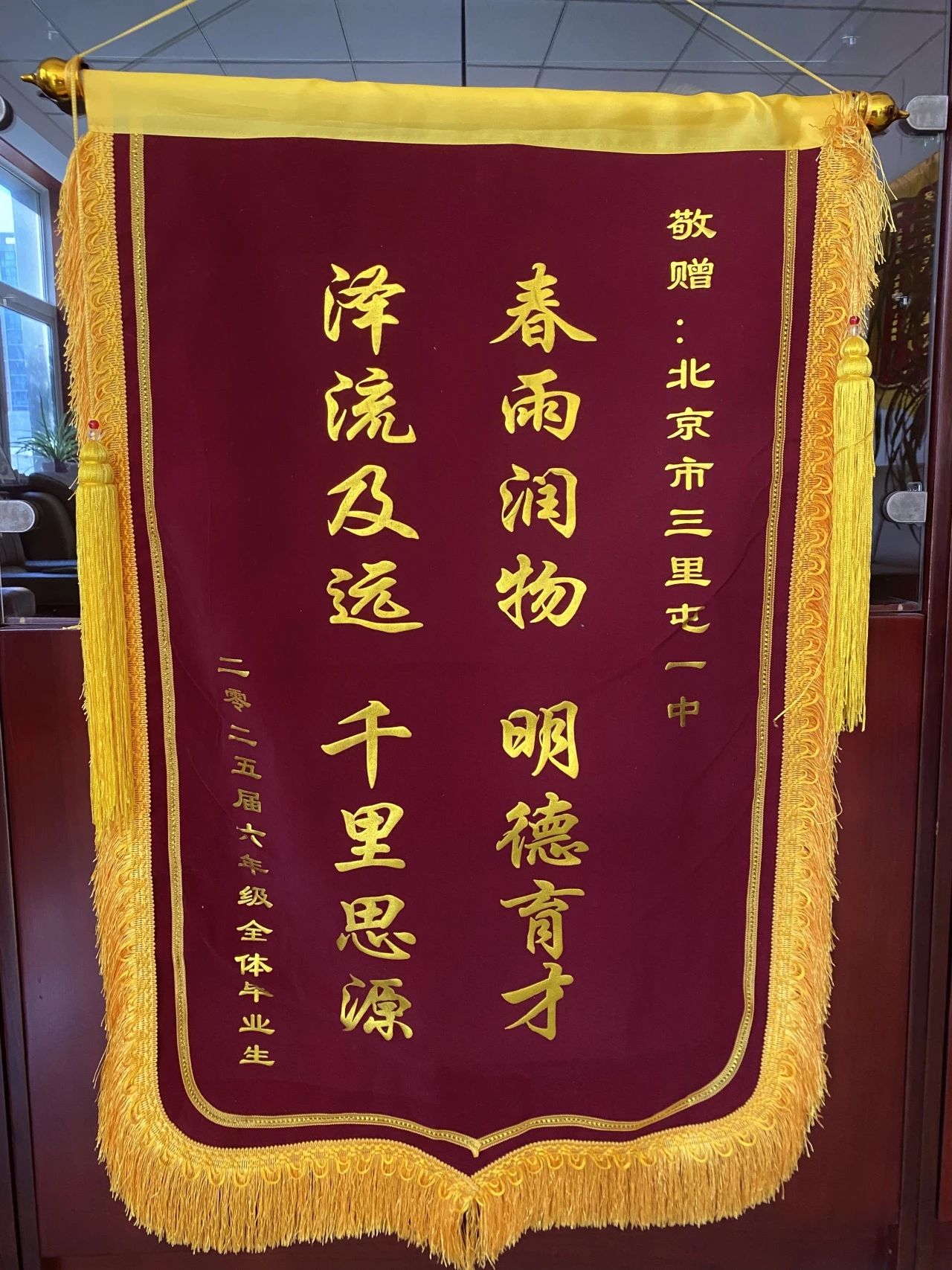 家長(zhǎng)代表王小木媽媽的發(fā)言則如同一幅溫情畫(huà)卷,代表全體家長(zhǎng)以一面錦旗致謝:“愿這方寸紅綢承載我們對(duì)學(xué)校匠心育人的敬意和對(duì)老師們深耕杏壇的感恩!”