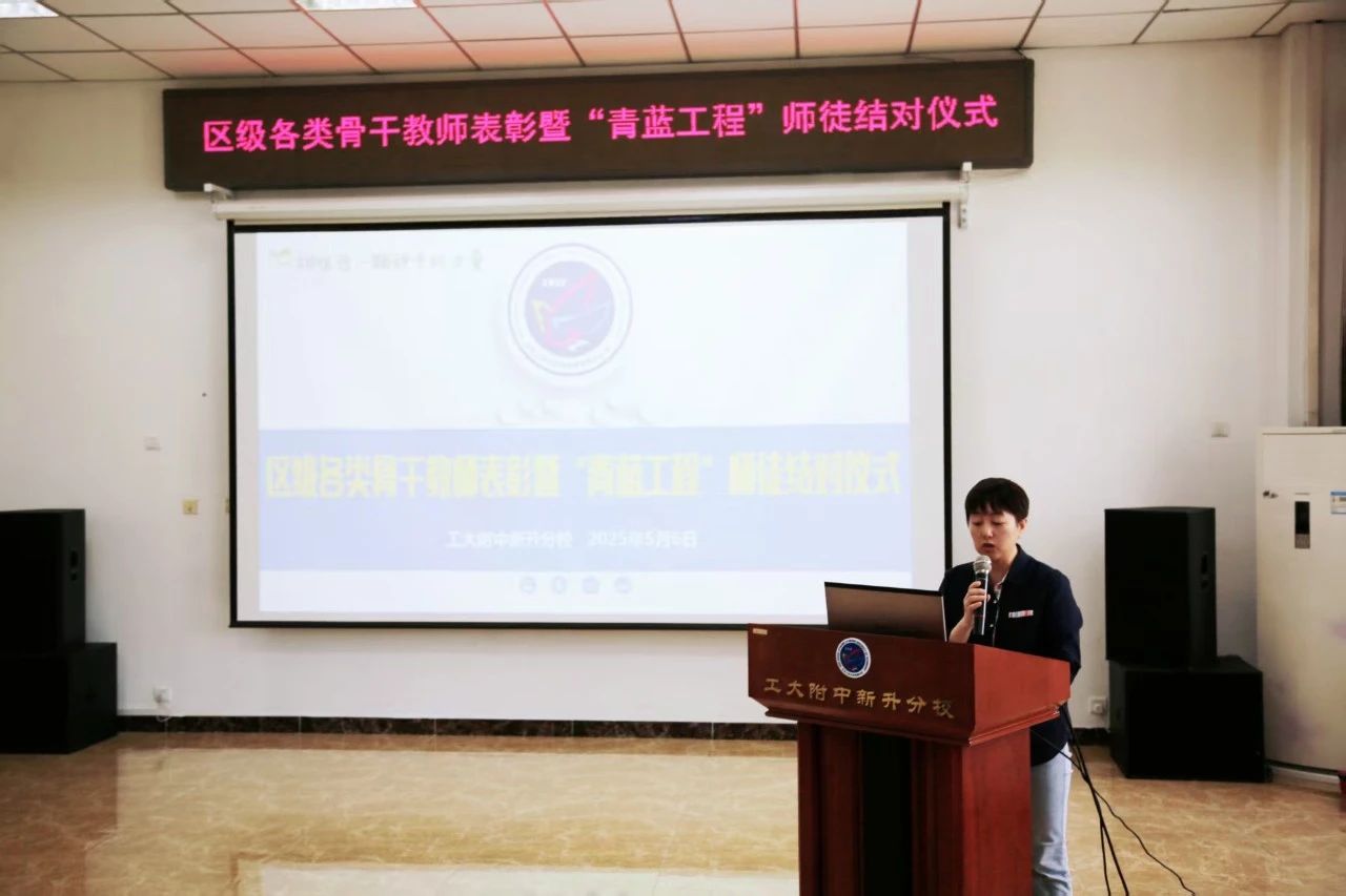 五月,人間至美,萬物并秀。在這充滿生機(jī)與希望的季節(jié)里,2025年5月6日,工大附中新升分校隆重舉行了新一屆區(qū)級各類骨干教師表彰暨“青藍(lán)工程”師徒結(jié)對儀式。活動由王麗華副校長主持。