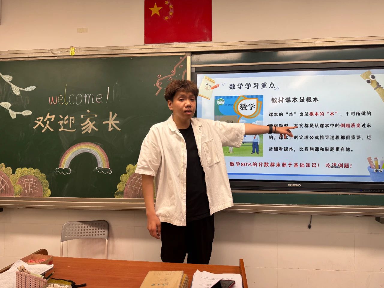 在班級(jí)交流環(huán)節(jié)中,各班主任與任課教師結(jié)合學(xué)科特點(diǎn)與班級(jí)實(shí)際,與家長展開深度溝通。老師們細(xì)致分享了學(xué)生在校學(xué)習(xí)生活中的閃光點(diǎn)與進(jìn)步空間,從課堂表現(xiàn)到作業(yè)完成情況,從學(xué)科能力培養(yǎng)到學(xué)習(xí)習(xí)慣養(yǎng)成,逐一解讀。同時(shí),老師們也生動(dòng)講述了學(xué)生在校園生活中的點(diǎn)點(diǎn)滴滴,讓家長們透過文字與圖片,仿佛置身于孩子的校園日常,更直觀地感受到孩子的成長軌跡。此外,針對(duì)家長關(guān)心的教育熱點(diǎn)問題,老師們現(xiàn)場答疑解惑,提供個(gè)性化的教育建議,為家校協(xié)同育人明確了方向。
