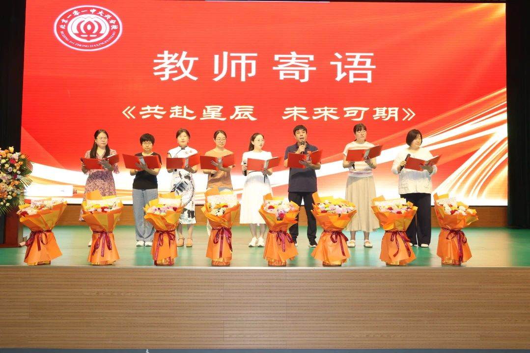 教師代表為即將遠行的學子們獻上深情寄語《共赴星辰 未來可期》。他們用最真摯的話語,回顧相伴成長的點點滴滴,送上最溫暖的叮嚀與祝福:“無論你們飛得多高多遠,母校永遠是你們堅強的后盾、溫暖的港灣。愿你們心中有火,眼里有光,腳下有路,以奮斗之姿書寫無愧于時代的青春華章!”老師們飽含深情的聲音在會場回蕩,深深觸動了每一位在場者的心弦。