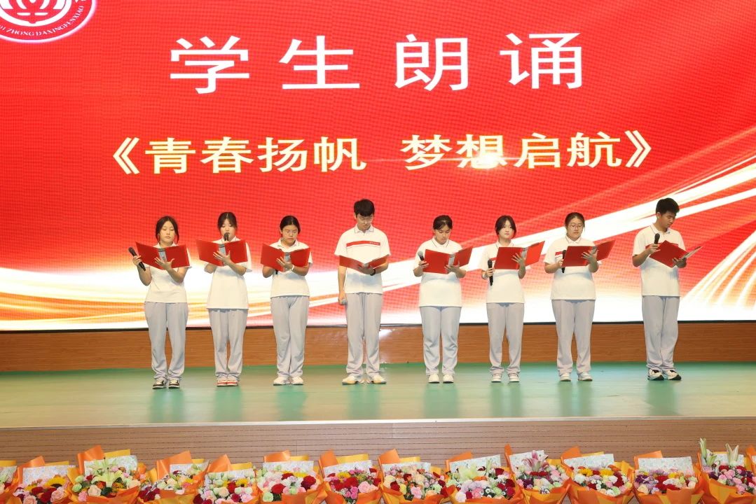隨后,學生代表深情朗誦了《青春揚帆 夢想啟航》。飽含激情的詩句,回顧了同窗共讀的美好時光,抒發(fā)了對母校的眷戀不舍,更以鏗鏘誓言表達了“乘風破浪會有時,直掛云帆濟滄!钡暮狼閴阎,展現(xiàn)了新時代青年昂揚向上的精神風貌。